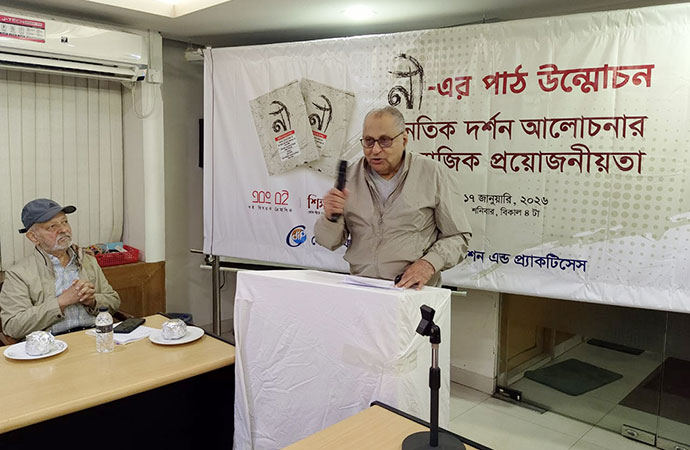 An auspicious discussion program on ethics and morality surrounding the publication of a little mag on moral philosophy titled NEE was held on 17 January at CDIP auditorium in Dhaka with the presence of writers, teachers, journalists, artists and social workers. The topic of the discussion was the Social Need for Discussion on Moral Philosophy (Noitik Darshon Alochonar Samajik Proyojoniota). It was organized by Ebong Boi and Shikkhalok and presided over by Saleha Begum, a writer and researcher. Professor Shahidul Islam, a foremost educationist in the country, graced the program as the Chief Guest. He said, "Children learn morality form their families and also from nature. The foundation of ethics and morality is built up at the dinner table discussions in the family. Our ethical and moral sense is in a serious decline. Nature should be a source of our moral learning."
